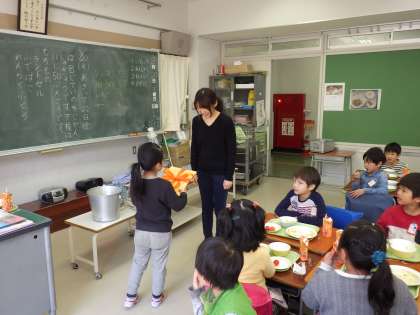 「いただきます」のあいさつは、調理員さんといっしょに言いました!とても和やかな給食最終日でした。