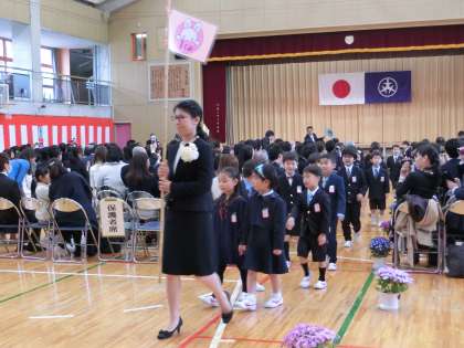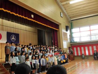校長先生や来賓の方のお話しに元気な返事をする1年生の子どもたちでした。