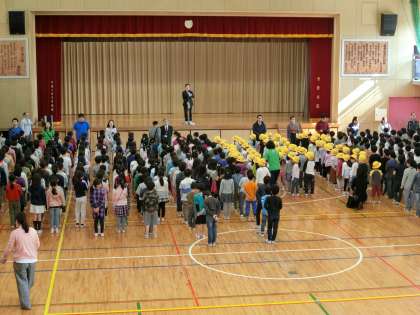 今日から1年生が、全校朝会や児童集会で仲間入りをしました。
