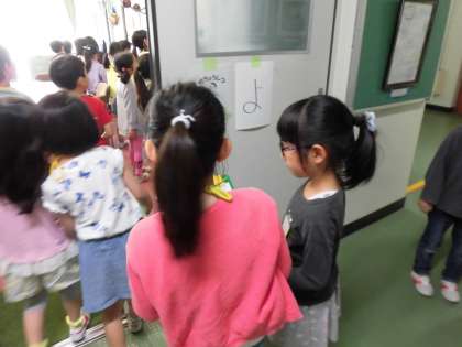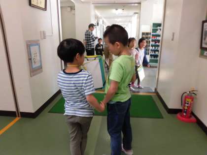 今日は1年生2年生合同で、生活科の学習「学校たんけん」をしました。
