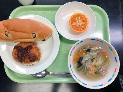 今日は手作りのポテトコロッケです。工場で作られた冷凍のコロッケを揚げるだけ、という小学校もありますが、笹原小学校ではじゃがいもの皮をむくところからすべて手作りです。みなさんが登校した頃には、すでに作り始めていました。たくさんのじゃがいもや野菜の皮をむいて切ったり、ひとつひとつ丸く形を作ったりするのはとっても大変な作業ですが、調理員さんは一生懸命がんばってくれました。感謝の気持ちをもって味わって食べてください。