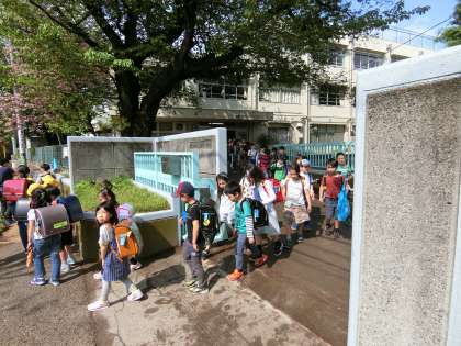 地区班活動を終え、放送での指示により順序よく地区班ごとの下校を開始しました。