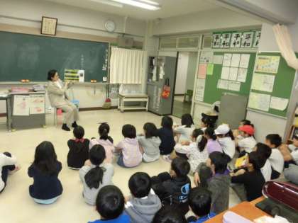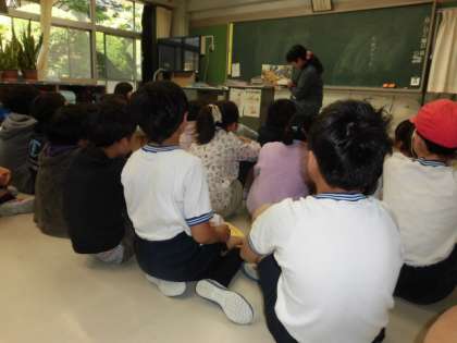 どちらの学級も、高学年らしい態度で、絵を見ながら静かにお話を楽しんでいました。