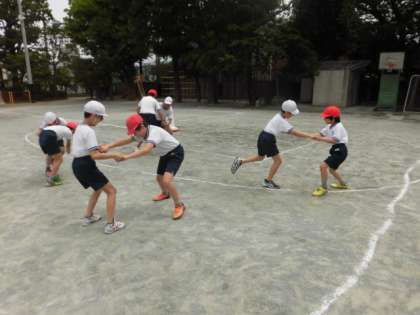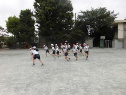 始める前は、「少し寒いな。」と感じていた子どもたちも、たくさん体を動かしていいあせをかいていました。