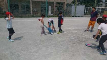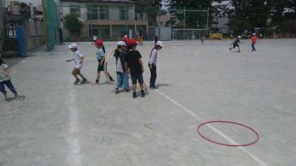 校庭、体育館、屋上に分かれて、学年ごとに遊びを考えています。