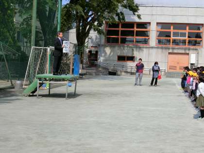 校長からは、3つのキーワード「春の全国交通安全運動」・5月の人格の完成をめざしてのテーマ「思いやり」・「廊下の歩き方」への思いやりについて話をしました。