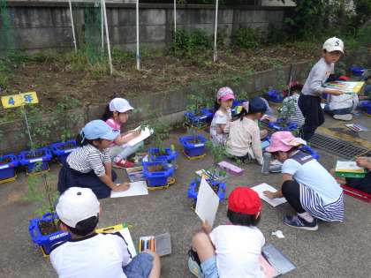 梅雨時になってしまうと外での観察もできないので、今日は3学級とも野菜の観察をしました。
