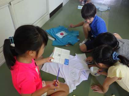 布用の絵の具で模様を入れたり柄を入れたりして、自分だけのポロシャツを作りました!