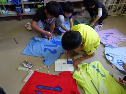 1年生の時にはクラスごとに決まった色のシャツでしたが、今年は自分で好きな色を選びました。