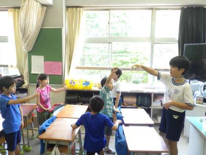 コンバットマーチの振り付けや、手を挙げるタイミングを低学年にやさしく教えてくれました。