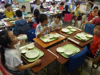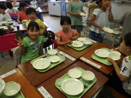 今日はとても暑い一日でしたが、2年生は4時間目にダンスの練習をした後、給食をしっかりと食べていました。