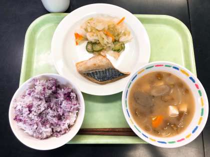 運動会まで残り4日となりました。毎日一生懸命練習をして、疲れが出てきている人や、ジメジメと暑くて食欲がない、という人もいると思います。しかし、そんなときにしっかり食べないでいると運動会で力を発揮することができません。今日の給食のゆかりごはんや野菜の甘酢かけは、さっぱりとしていて食べやすいですし、この酸味やなめこのネバネバは、疲れを回復してくれます。好き嫌いせずに食べましょう。