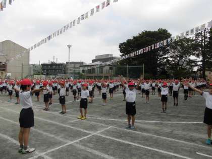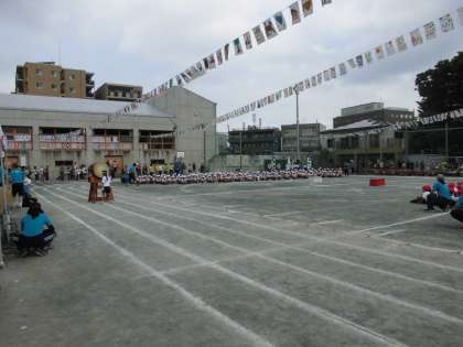 続いて、はじめの運動、応援合戦1とプログラムが進み、現在2年生による大玉リレーが始まるところです。