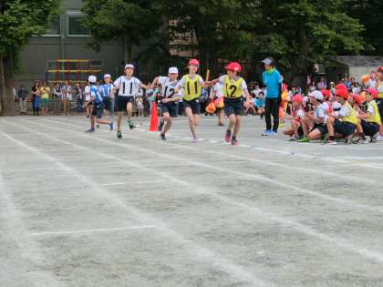 練習を積み重ねてきた子どもたちは、自信をもってバトンパスをしてつなぎ、ゴールを目指して頑張りました。