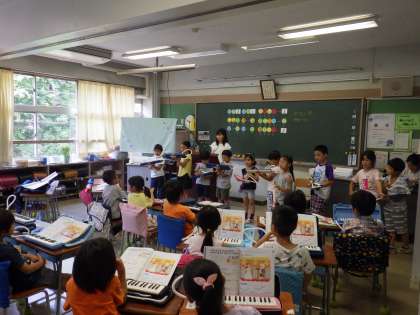 1時間目はそれぞれの学級で図工・音楽・国語の学習に取り組んでいました。