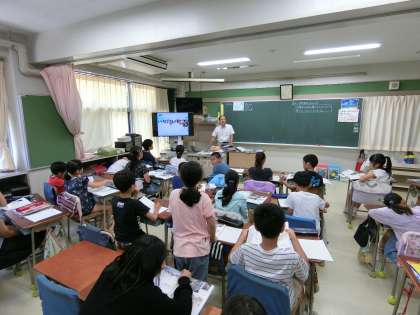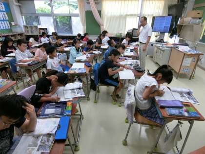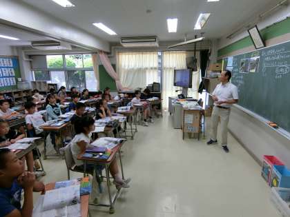 ICTを活用した写真やグラフを見ながら、気温や降水量の変化の様子、そこから予想される自然の姿、また沖縄の現在や伝統的な家の写真を比べながら、住まいの様子と人々のくらしについても、自分の考えを発表したり、友達の考えと比較したりしながら、積極的に取り組んでいました。最後に、学習の振り返りをノートにまとめ、一人ひとりが今日の学習を整理していました。