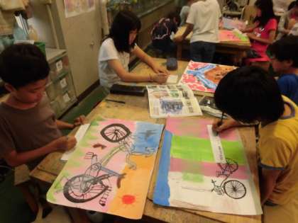 「自転車でGO!」が完成し始めました。4月からていねいにかき続けてきた作品です。背景は、春のイメージでかかれています。題名をつけ、ふり返りカードで自分の作品をふり返りました。次回、みんなの作品を観賞し合うのも楽しみです。