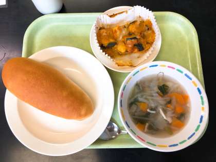 かぼちゃというと、どの季節を思い浮かべますか?10月のハロウィンに食べたり、12月の冬至に食べたりしますが、実は国産のかぼちゃは今の時期が旬でおいしいのです。今日はそんなかぼちゃをグラタンにしました。かぼちゃはおいしいだけではなく、栄養が野菜のなかでもトップクラスで入っています。暑さで疲れも出てきていると思うので、しっかり食べましょう。