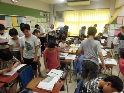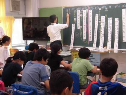 本日5校時に6年1組の教室で校内研究、国語科「宇宙時代を生きる」の研究授業が行われました。今年度の研究主題は「主体的に学ぶ子どもを育てる〜共有することを通して〜」です。本日の授業では、子どもたち一人ひとりが自分の考えをしっかりともち、友達のノートを見たり、ペアで交流したりして共有していました。また、学級全体での話し合いでは、多くの子どもが発表し、自分の考えを共有しました。多くの考えにふれることで、自分の考えを広げたり、深めたりすることができました。授業が終わっても、友達と意見を交換するなど、子どもたちは一生懸命に取り組んでいました。