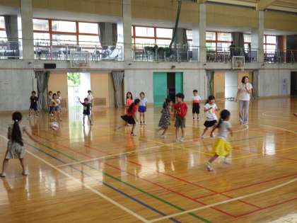 ルールを覚えて、全員で仲良くボール遊びをすることができました。