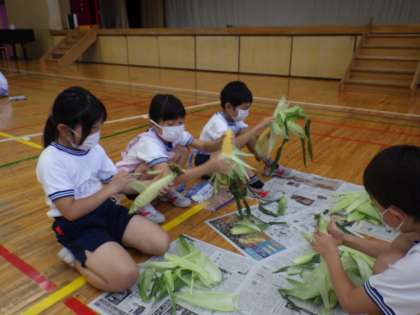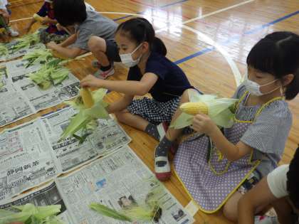 7/9 2年生 生活科 トウモロコシの皮むき3