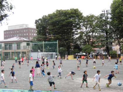 笹原小学校の子どもたちは、水たまりをよけながら校庭で元気よく走り回っていました。