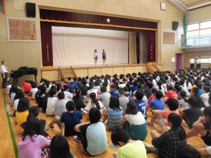 続いて、5年生代表の子どもたちが1学期を振り返っての感想やこれからの抱負などについて立派にスピーチし、大きな拍手が全校から送られました。