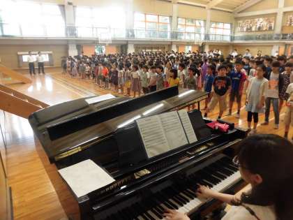 最後に、全員で校歌を歌い、生活指導担当から「夏休みの生活について」の話があり、終業式を終えました。