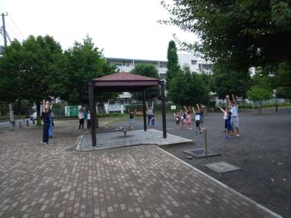 今日は、笠森公園で行われているラジオ体操会に参加しました。
