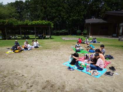 日光だいや川公園に着きました。天候に恵まれ、公園の芝生のところで、お弁当を食べています。朝が早かったので、子どもたちは、食欲も旺盛です。