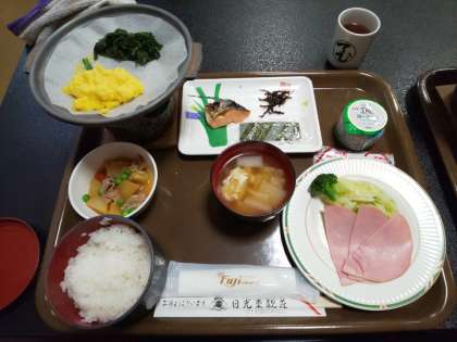 「今日は、華厳の滝の見学や戦場ヶ原ハイキングがあるのでしっかり食べましょう!」