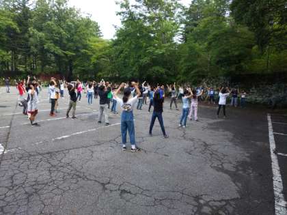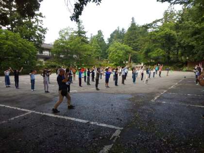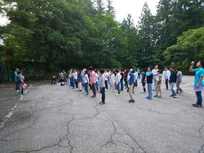 子どもたちの元気なあいさつが、宿舎に、そして朝の集いの場所で、響き渡りました。