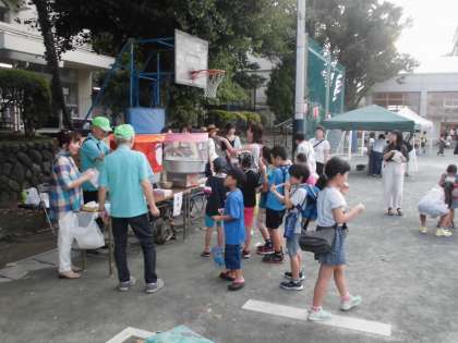 今日は、笹原小学校こども縁日です。午後5時の開始とともに、子どもたちかやってきました。今年は、お囃子も流れ、例年よりもお祭り感が増したように思えます。