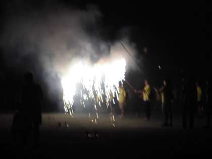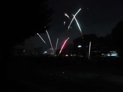 暗くなってきたこども縁日のラストを飾るのは、おやじの会の皆様による仕掛け花火、打ち上げ花火です。例年通りナイアガラも。その後、子どもたちは手持ち花火をして、こども縁日は終わります。今年も笹原の子どもたちにとって、よい夏の思い出の一日となったことと思います。準備から片付けまでご協力いただきました遊び場開放委員会の皆様、おやじの会の皆様、PTAお手伝い係の皆様、そして地域の皆様、本当にありがとうございました。