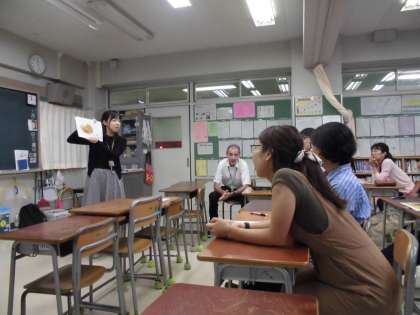 笹原小の子ども達によりよい英語活動を行うために、株式会社ボーダーリンクの方々をお招きし、教員研修を行いました。
