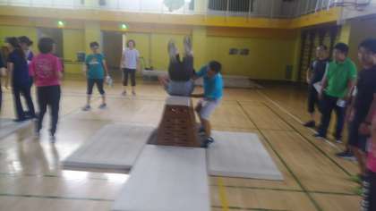 跳び箱の安全な跳び方や、補助の仕方を学びました。