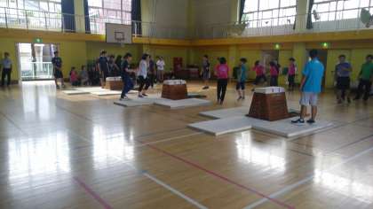 今日は、区内の千歳台小学校で体育実技研修会がありました。