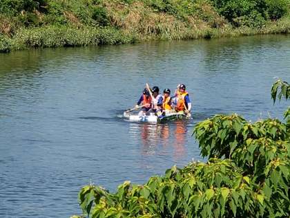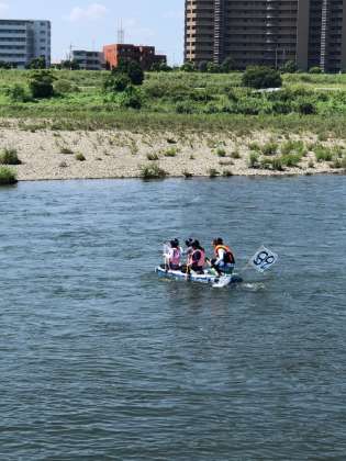 8月25日(日)に世田谷区の多摩川河川敷下流域で開かれた「第22回 アドベンチャーin多摩川」に、本校の子どもたちとおやじの会のメンバーで構成したいかだ2艇が出場しました。