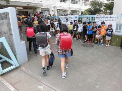 少し涼しくなった感じがする朝、子どもたちは元気よく登校してきています。2学期の「あいさつキッズ」を務める2年生と5年生の数も、日に日に増え活気が増しています。