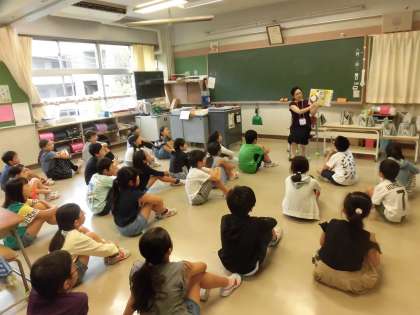 今日が十五夜ということもあり、秋の季節や月にちなんだ本の紹介と読み聞かせもあり、子どもたちは、楽しそうに聴き入っていました。