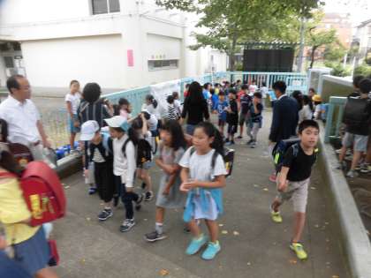 少し早めに登校してきた2年生と5年生が正門に立ち、明るく元気な声で「おはようございます!」と声かけをしていました。土曜授業参観で来校の保護者の方々へもあいさつをし、とても盛り上がりを見せ、気持ちのよいあいさつを交わす中で、一日の学校生活がスタートしました。