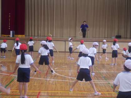 なわとび集会に続き、同じ講師による「なわとび教室」が開かれました。