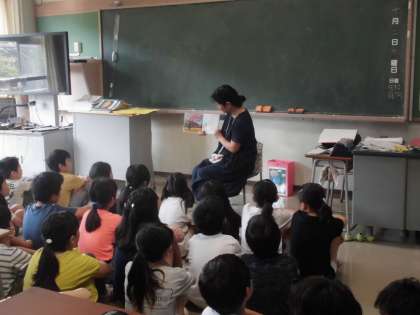 4年の1組と2組で、お話しポケットの皆さんによる朝の読み聞かせがありました。