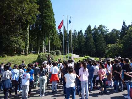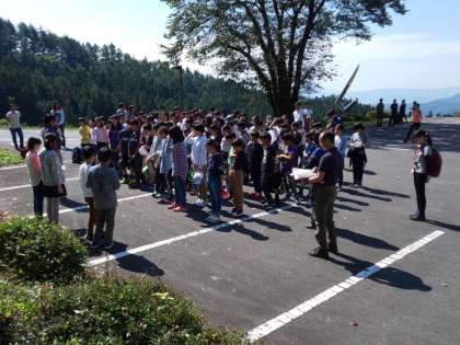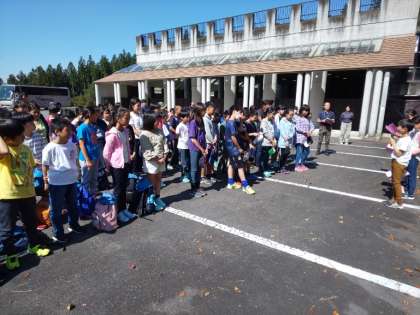 2泊3日の宿泊生活をともにする世田谷区立中里小学校のみなさんと、開室式を行いました。司会・進行は、笹原小学校が担当し、両校でのあいさつも交わしました。