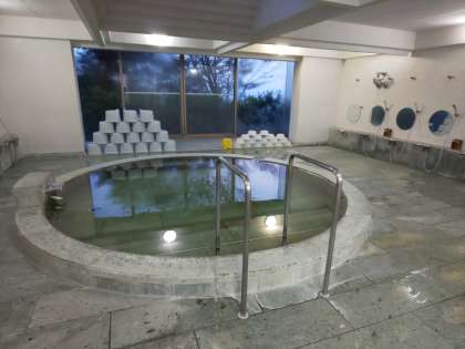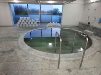 予定を10分繰り上げて1組から入浴の時間が始まり、現在、2組が入っています。男湯も女湯も、とても広いお風呂です。