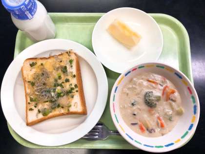 みなさんは、カルシウムという栄養を知っていますか?カルシウムは、骨や歯を作る材料になるので、成長期のみなさんに欠かせない栄養素です。カルシウムは、牛乳やチーズなどの乳製品、魚に多く含まれています。今日の給食には、じゃこやチーズ、牛乳が入っているので、カルシウムたっぷり給食です!また、シチューの中にきのこが入っているのに気がつきましたか?実はこのきのこはまいたけと言って、カルシウムの吸収を高めてくれる力があるのです。