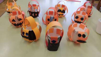 今日のイベントは「ドキドキ!ハロウィンのお話会」でした。絵本「ハロウィーンってなあに?」の読み聞かせの後、みんなでカボチャのミニバッグを作りました。コップにどんな絵をかくか決めて、目と口の形を工夫して・・・個性豊かな表情のミニバッグができました。並んでいると素敵ですね。作り終わってから、読書を楽しむ姿も見られました。