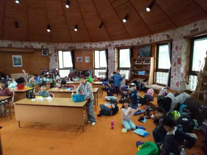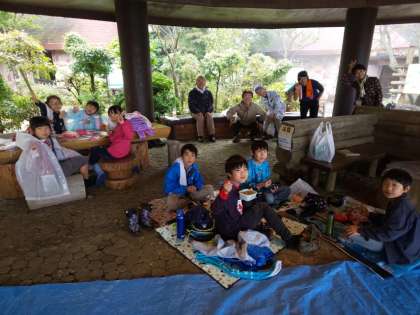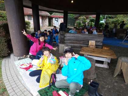 少し霧雨模様のため、屋根付きドームや学習室でお弁当を食べました。