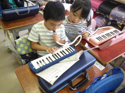 友達どうしで教えあったり、個人で一生懸命練習したりして、鍵盤ハーモニカで演奏するのが上手になりました。