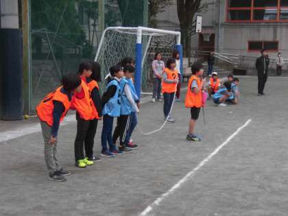 各学級ごとに跳ぶときは長縄を運動委員が回してくれて、低学年のみんなは楽しそうに跳ぶことができました。